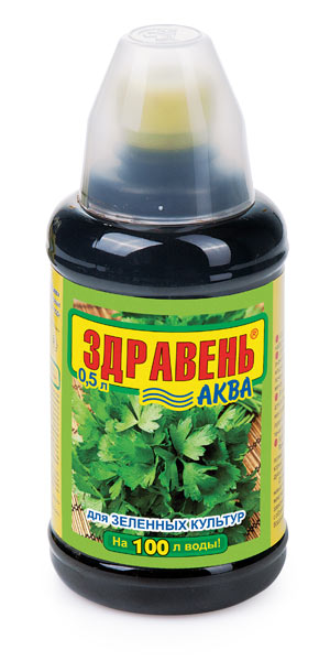 «ЗДРАВЕНЬ-АКВА ЗЕЛЁНЫЕ КУЛЬТУРЫ» — жидкое комплексное органоминеральное удобрение для корневой и некорневой подкормки капусты и зеленных культур в личных подсобных хозяйствах.