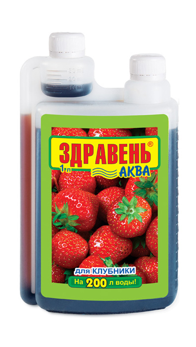 «ЗДРАВЕНЬ-АКВА для ягодников и ягодных культур» — жидкое комплексное органоминеральное удобрение для корневых и внекорневых подкормок ягодников и ягодных культур (клубника, смородина, малина и др.) в личных подсобных хозяйствах.